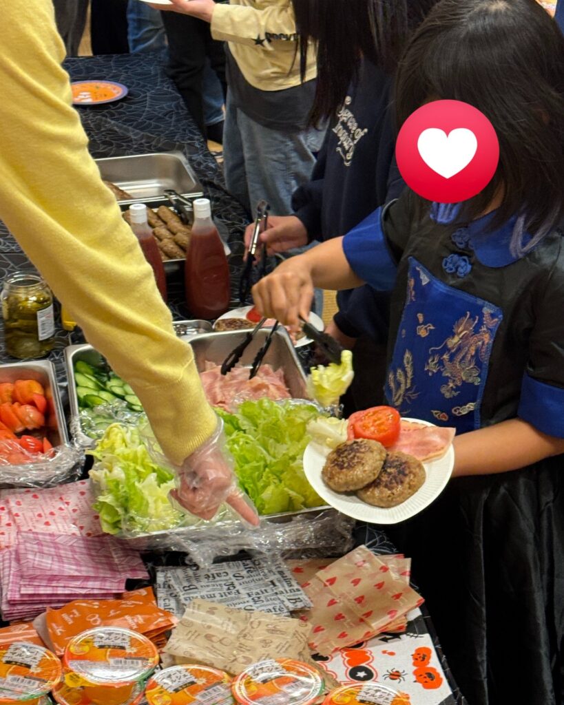 思い思いに具材を選んで、自分だけのハンバーガーを作りました!
