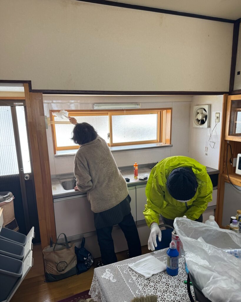 当日は予想外の大雪に見舞われ、非常に足元の悪い中での作業となりましたが、TUNAGの皆様の迅速かつ丁寧な作業のおかげで、予定していた工程を無事に終えることができました。総勢13名という力強いチームワークにより、長らく使われていなかった空間が少しずつ息を吹き返していく様子に、スタッフ一同胸が熱くなる思いです。