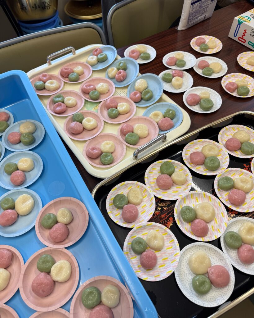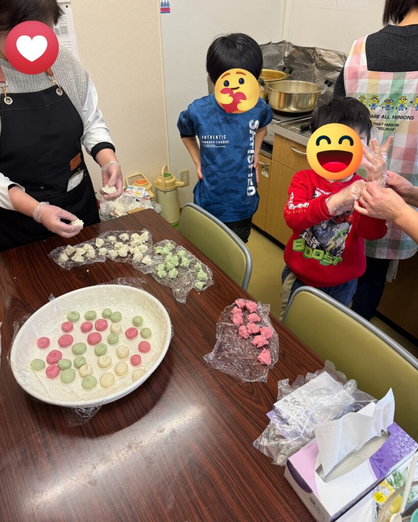 「こんなにきれいな色になるんだ!」と、子どもたちも興味津々。自分たちで一生懸命丸めたお団子は、見た目も鮮やかで、食欲をそそる仕上がりになりました。